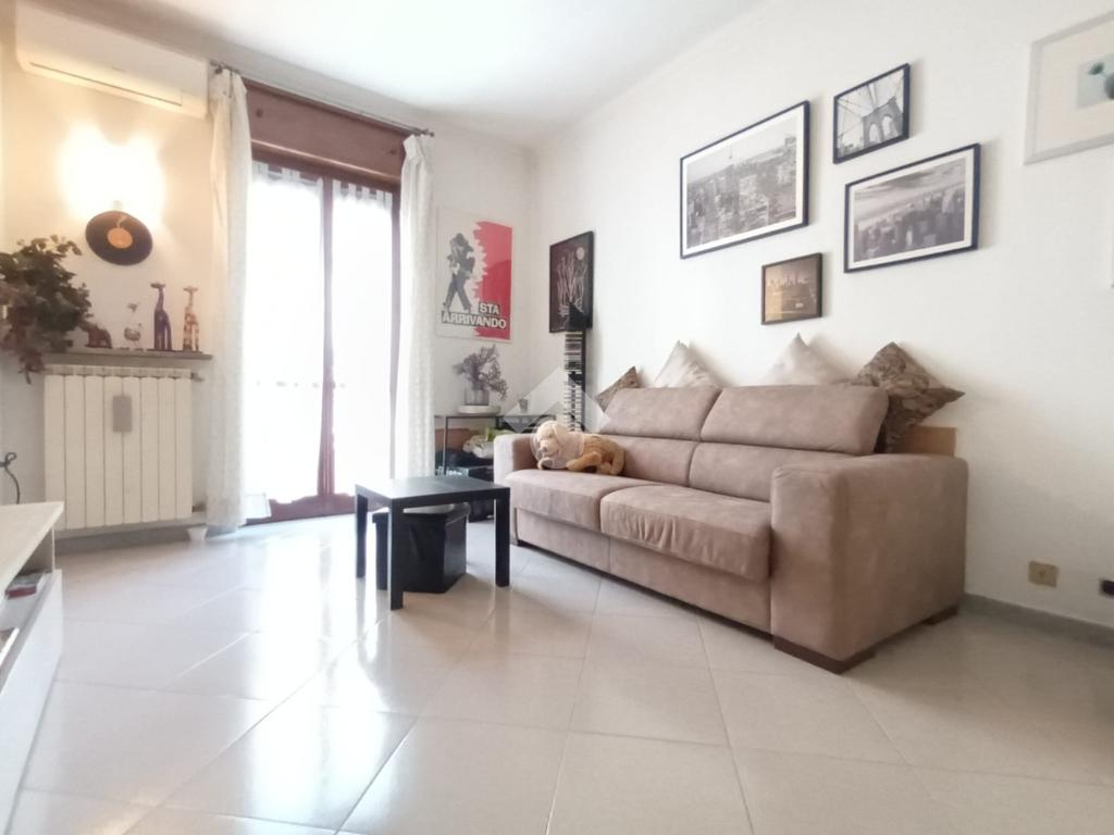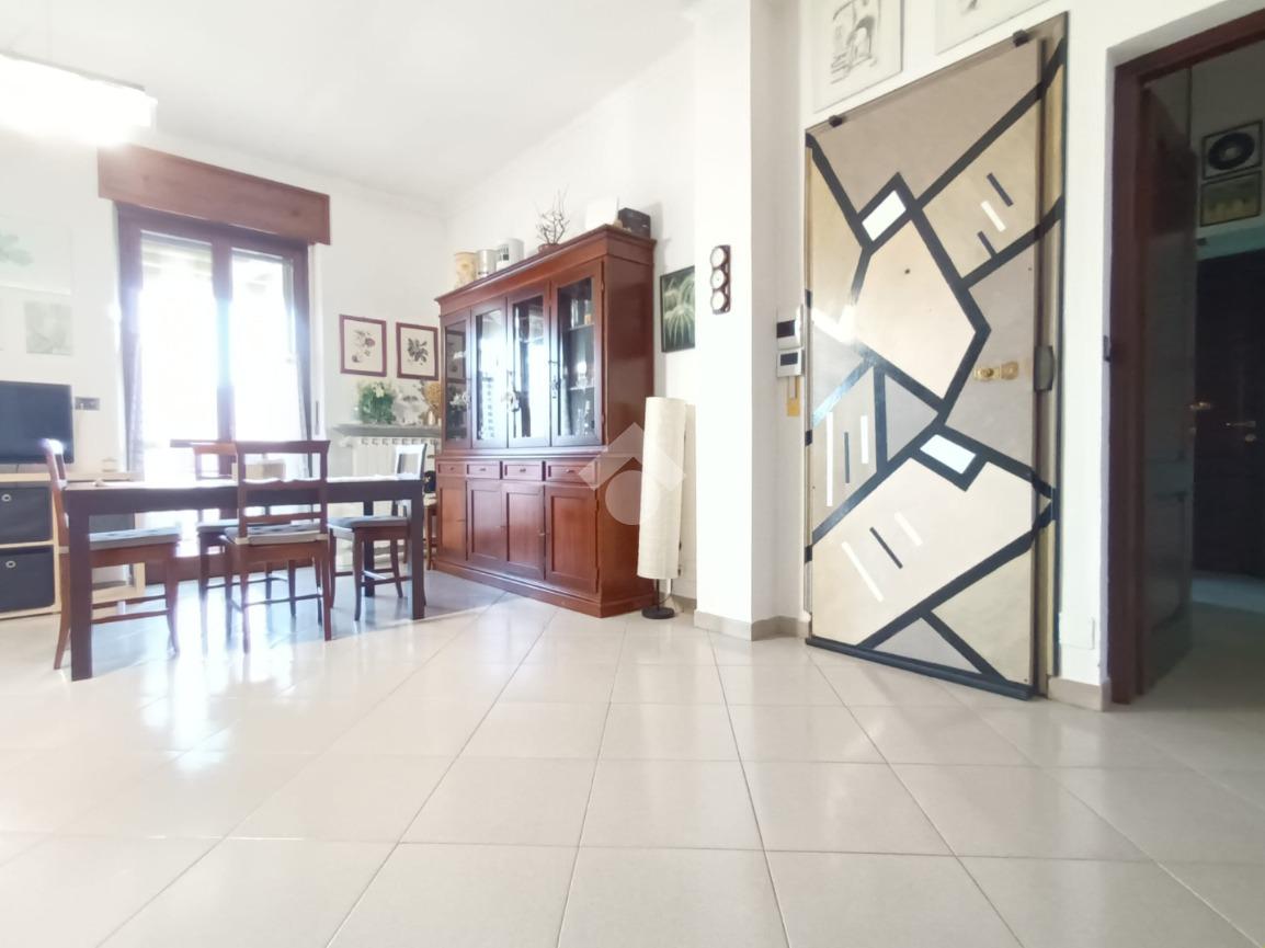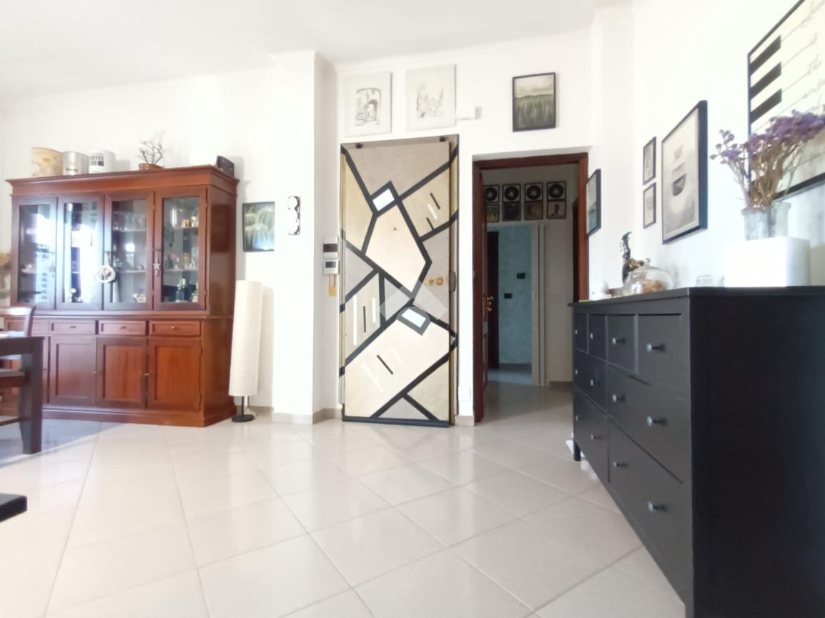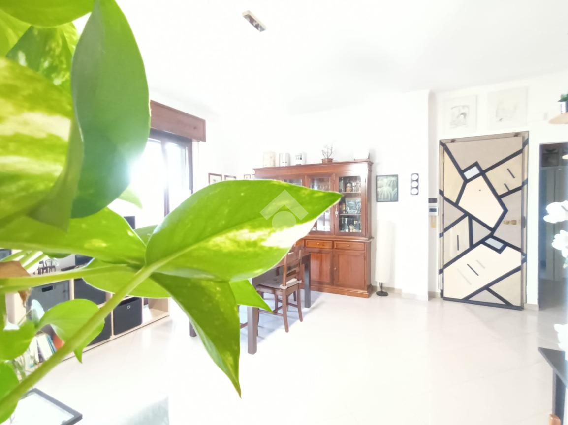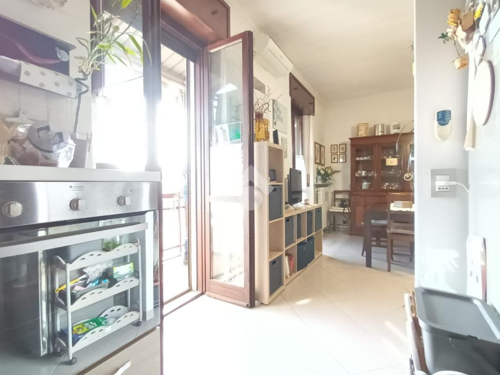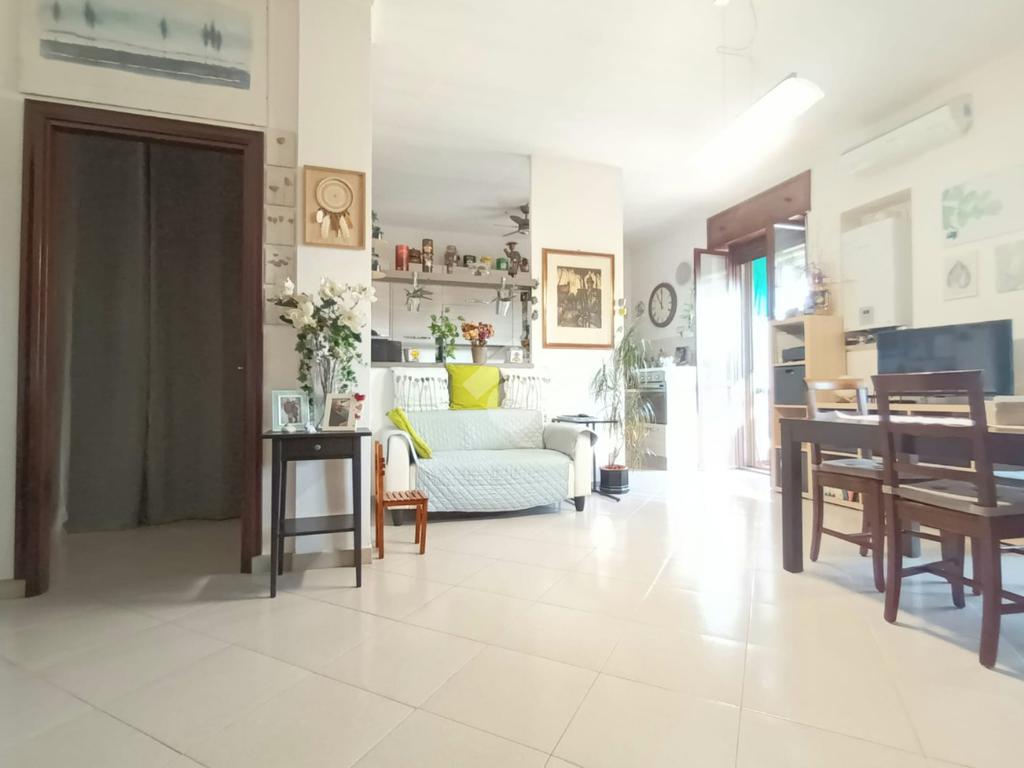 L'ingresso è living su ampio soggiorno con cucina a vista, le quattro camere sono ampie e ben squadrate.